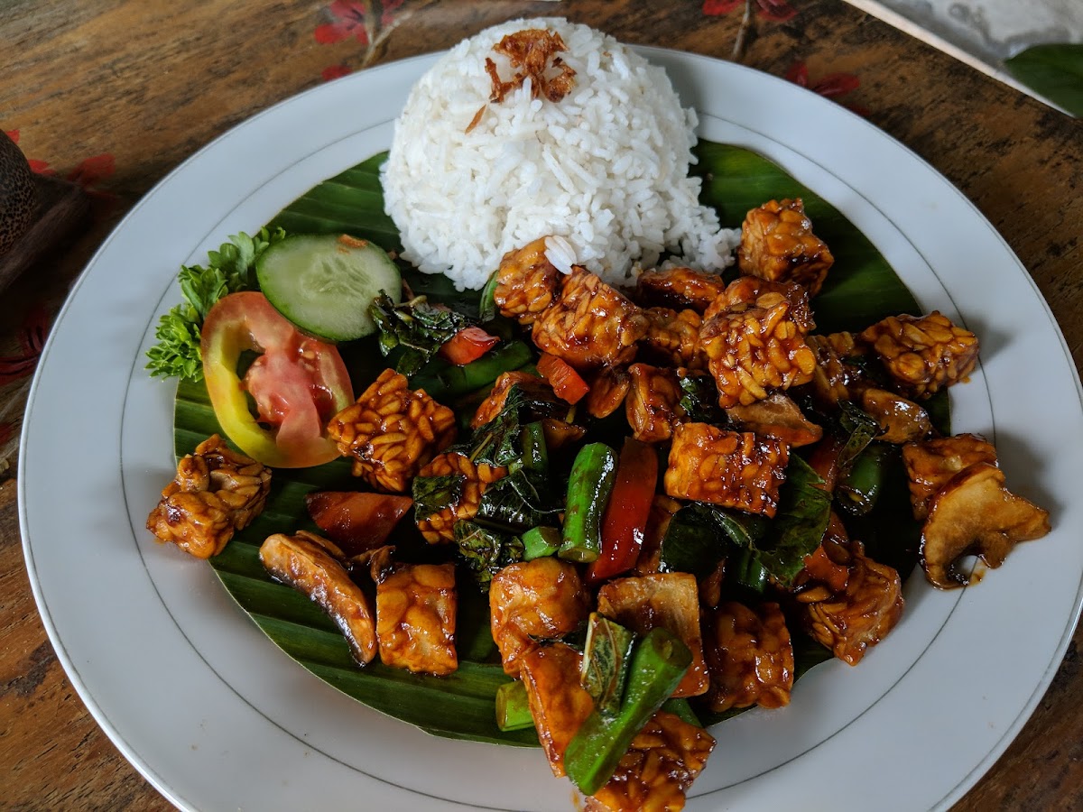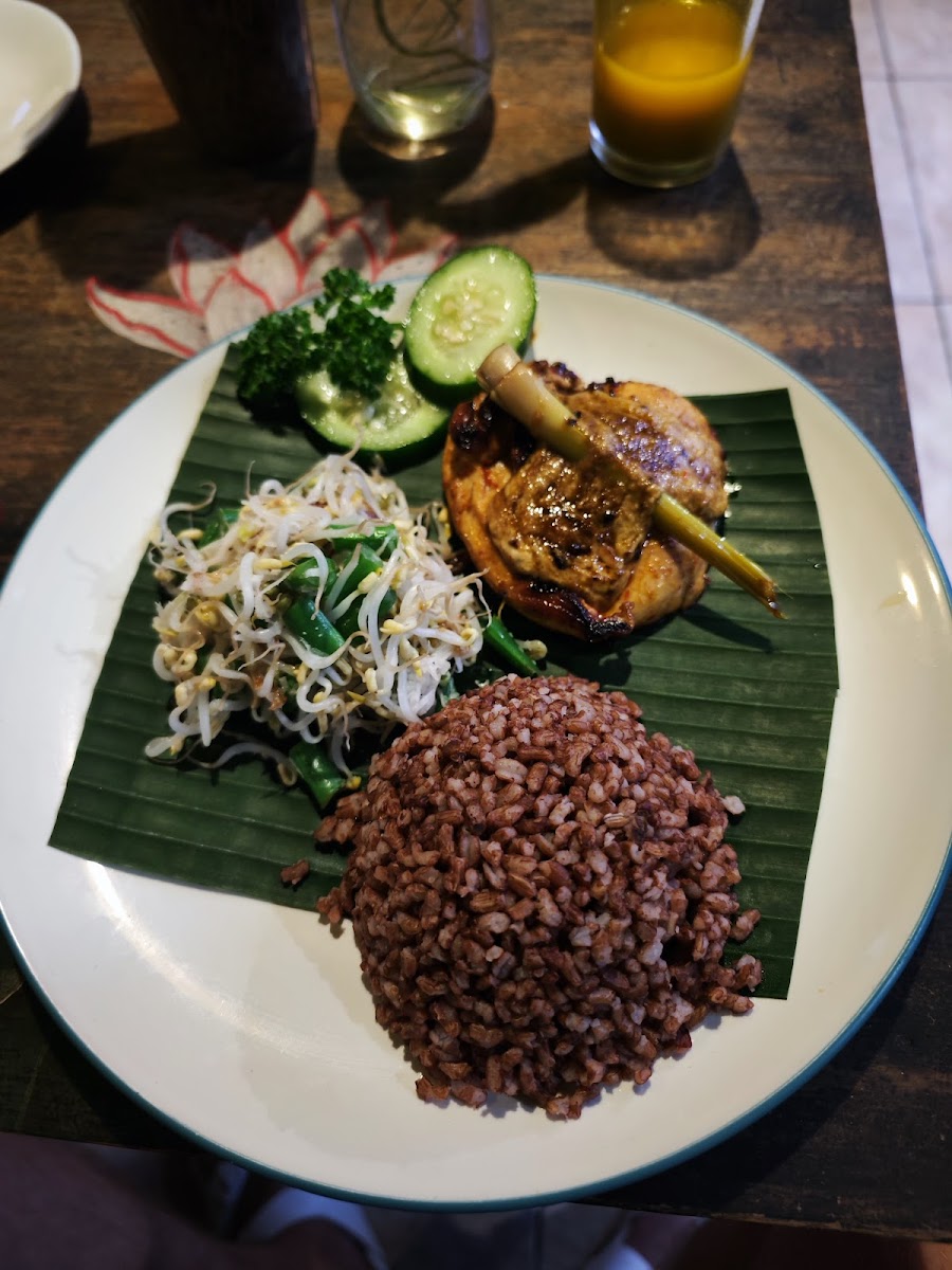 Vegetarians and mushroom lovers will adore the Oseng Tempe Jamur, a delicious stir-fry featuring tempeh and mushrooms cooked to perfection with Balinese spices. Another must-try is the Balinese Smoked Chicken, which brings the rich, smoky flavor of slow-cooked chicken, making it a great dish for those looking to explore traditional Balinese cooking. For a more classic, hearty option, the Mie Goreng Ayam-Balinese fried noodles with chicken-is a comforting dish, perfect for lunch or a quick bite.
